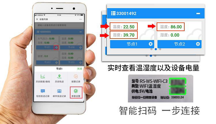 與傳統的溫濕度91粉色视频相比,WIFI-WS-WIFI-C3具有三個顯著的特點:低功耗、采用AirKiss技術的無線組態聯網和微信平台上的遠程監控。
